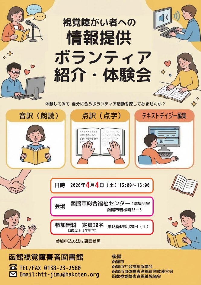 函館視覚障害者図書館からのお知らせ